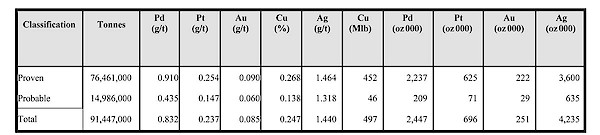 Table 2. Historic Mineral Reserve Estimate for the Marathon PGM-Cu Deposit*