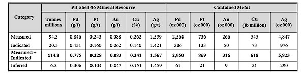 Table 1. Marathon PGM-Cu Pit Shell Mineral Resource (Diluted Block Model)